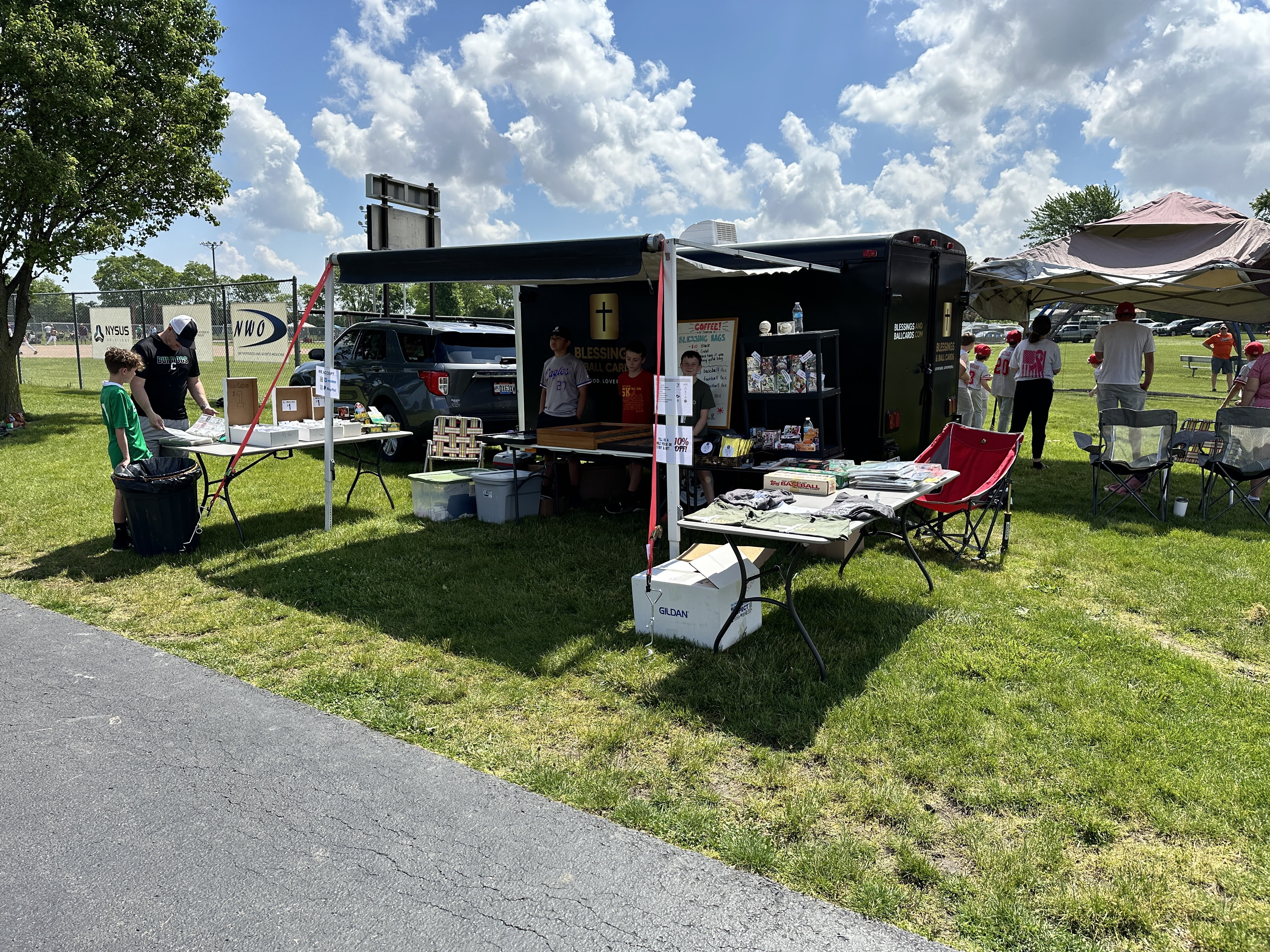 - Ball cards: Well, you knew there had to be ball cards somewhere at these tournaments! The Blessings and ball cards trailer will be on site selling singles, graded cards, packs, boxes, and Blessings bags. Not only that but we will make sure you feel like a loved brother or sister in Christ – because that is our mission verse from Philippians 2:3! Half of all profits will go to people in need in your community.